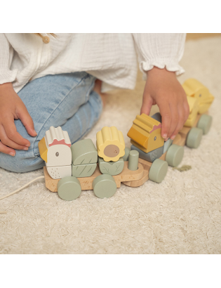 Le beau train à blocs de Little Dutch est illustrée avec des mammifères marins de la collection Ocean.  Vous pourrez construire de nouveaux wagons...