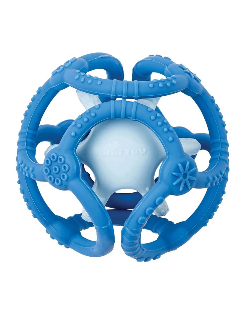 Set de balle en silicone de la marque NATTOU, facile à attraper afin que bébé puissent faire ses dents en mâchouillant.