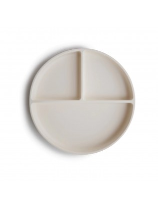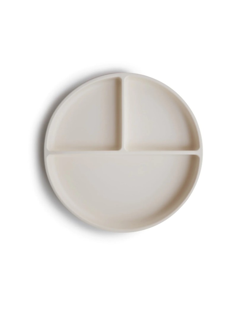 Assiette compartimentée à ventouse en silicone couleur ivoire de la marque Mushie.