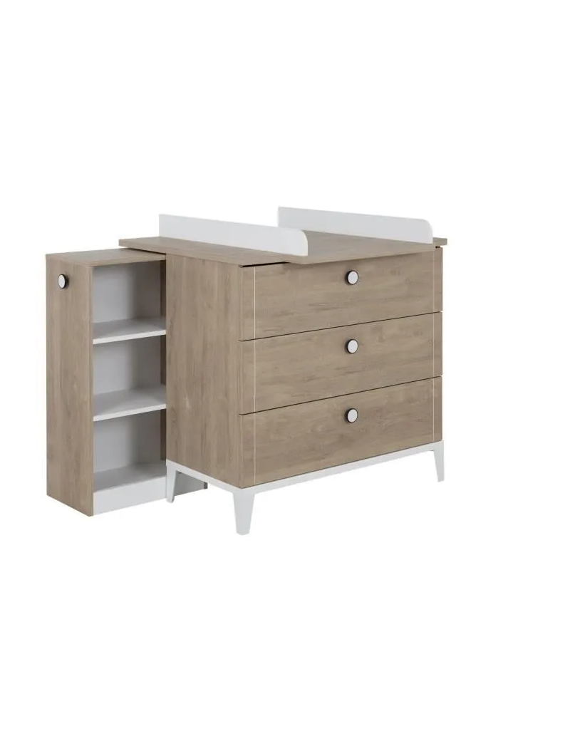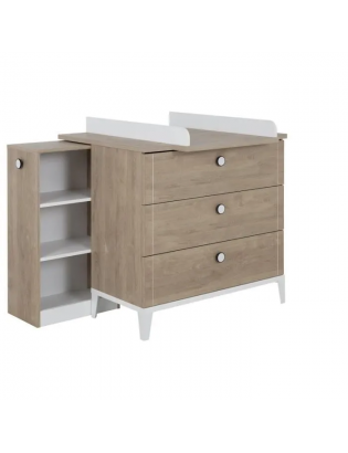 La hauteur de 91 cm a été spécialement étudiée pour en faire une commode à langer si vous ne disposez pas déjà d’un meuble dédiée à cette fonction. Le plan à langer Marcel s’adapte spécialement sur cette commode, avec sa robe blanche il contraste élégamment. En largeur, la commode offre 95 cm, une surface suffisante pour y déposer les produits d’hygiène utilisés lorsque vous changez les couches de bébé par exemple.