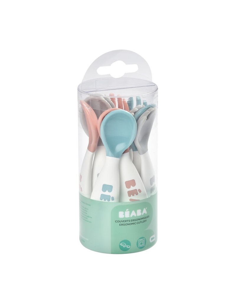Lot de 10 couverts ergonomiques 2e âge bleu/rose de la marque Béaba.