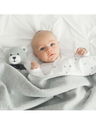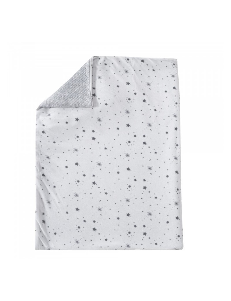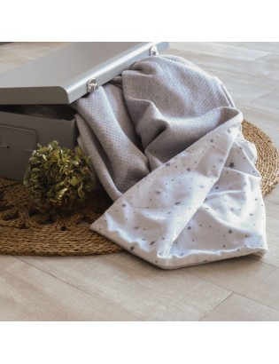 Aussi douce que jolie cette couverture sera idéale pour les balades avec bébé. Pratique, elle est réversible avec une face en velours avec un motif étoiles et l'autre face est en matière molletonné grise. Un duo gagnant pour garantir douceur et confort à bébé grâce à sa double épaisseur !