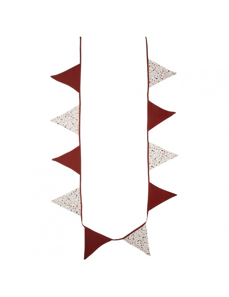 Une jolie guirlande composée de fanions en coton pour apporter une touche déco très tendance à la chambre des petits ! Cette guirlande a une longueur de 250 cm environ.