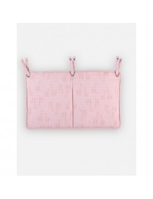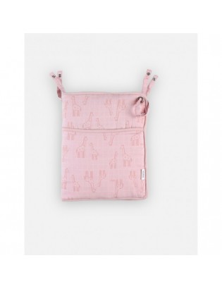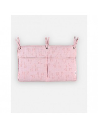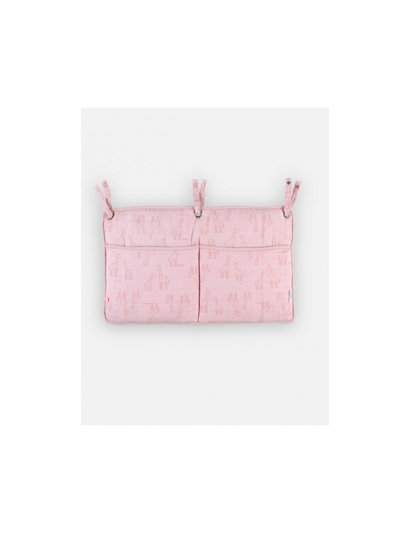Pratique et esthétique, la poche de rangement rose imprimée girafes avec deux compartiments spacieux est un indispensable au quotidien. Parfait pour quelques petits espaces de rangement supplémentaires pour les affaires de bébé, il s'introduira aisément dans une déco pleine de douceur. Doté de liens avec boutons pressions, vous pourrez l’accrocher à l’extérieur du lit, sur un porte-manteau ou un meuble. Parents et enfants l'adoreront !