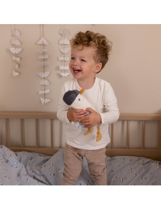 Les favoris de la collection Sailors Bay forment ensemble le cadeau idéal pour une maternité ou une baby shower. Ce superbe coffret contient trois produits tout en douceur pour dormir, câliner et jouer. Le doudou avec sa douce mouette est agréable pour câliner, mais est aussi très amusant pour jouer à coucou beuh. Jack, la mouette en peluche, est toujours là pour un gros câlin et vous suivra partout. Ce lot comprend également un jouet de dentition avec un voilier hochet bien doux pour jouer. Il stimule la coordination mains-yeux et la curiosité des enfants. L’anneau de dentition réconforte également bébé quand arrivent ses premières dents. Les 3 produits sont tous emballés dans 1 superbe coffret-cadeau.