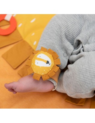 Le hochet bracelet Mr. Lion de la marque Trixie se fixe au poignet ou à la cheville de bébé pour stimuler son éveil.
