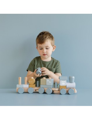 Le beau train à blocs de Little Dutch est illustrée avec des mammifères marins de la collection Ocean. Vous pourrez construire de nouveaux wagons grâce aux blocs aux différentes formes et couleurs modernes. Le train est composé d’un total de 17 pièces et fait ± 45 cm. Il est agréable de jouer avec ce jouet ainsi que de l’utiliser comme accessoire dans une chambre de bébé ou d’enfant.