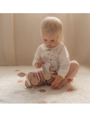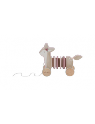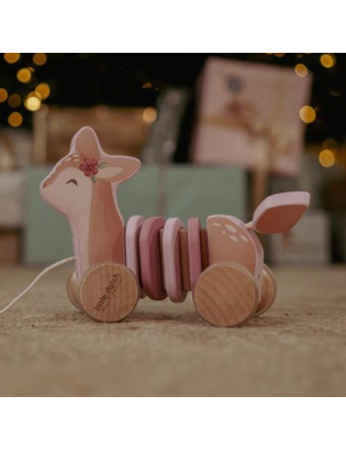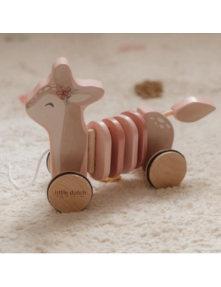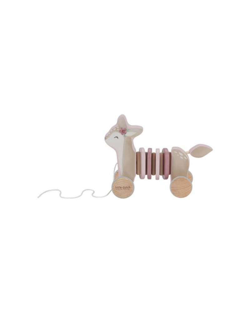 Jouet à tirer faon en bois de la marque Little Dutch. Ce petit faon est prêt pour l'aventure ! Il suffit de tirer sur la ficelle et de regarder le faon suivre gracieusement, que ce soit en explorant le salon, en naviguant dans les couloirs ou en faisant des cercles dans votre chambre. Partez pour un voyage enchanteur dans le jardin mystique des fées, où vous et votre ami le faon découvrirez des fleurs à couper le souffle et des merveilles magiques. Fabriqué en bois robuste et orné d'anneaux colorés, ce faon à tirer offre non seulement un divertissement sans fin, mais favorise également la marche et le développement de la motricité.