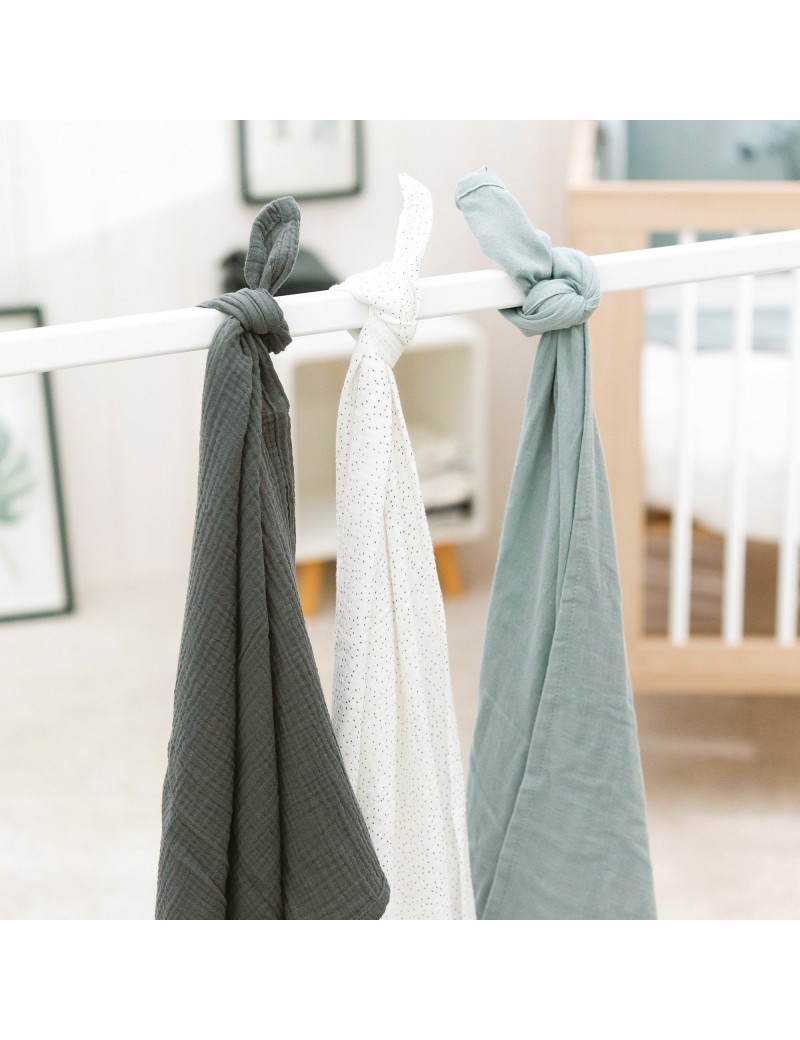 Nattou langes en mousseline 100 % coton, lot de 3 (65 x 65 cm)