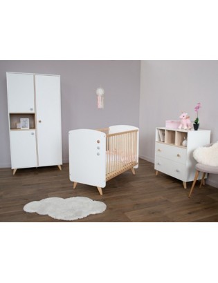 Découvrez une chambre aux lignes tendances et contemporaines, sublimée d'un décor blanc et bois naturel, qui apportera à la fois élégance et douceur dans la chambre de bébé.
