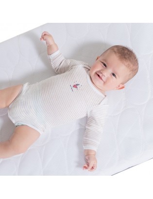 Matelas respirant sécurité 3D Dream. Anti-étouffement, anti-transpirant, imperméable et déhoussable. Faites entrer la sécurité maximale dans le lit e votre bébé avec ce matelas novateur qui garantit une totale perméabilité à l'air et évite tout risque d'étouffement en cas de retournement de bébé sur le ventre, face contre le matelas.