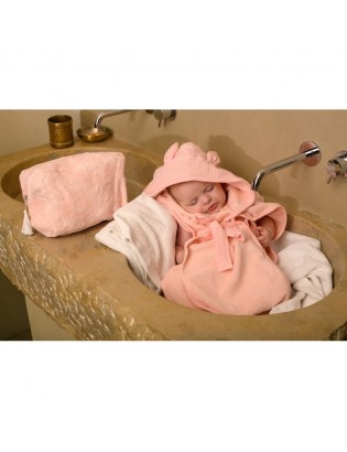 Peignoir bébé bambou et gaze de coton rose blush