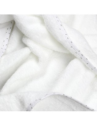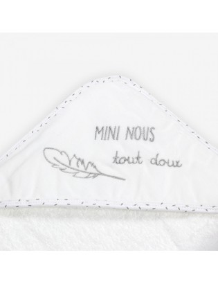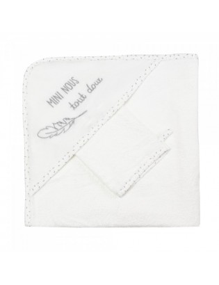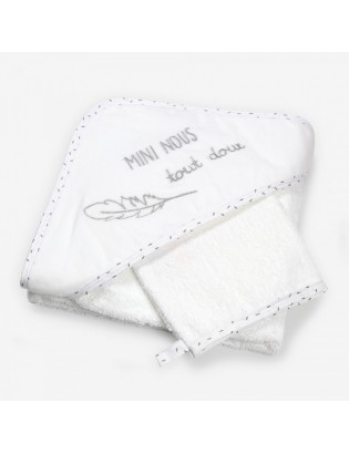 Ce bel ensemble de bain brodé "Mini Nous" est composé d'une cape de bain à capuche et d'un gant de toilette assorti. Conçu en éponge épaisse 100% coton, ce set de bain est doux et ultra absorbant.