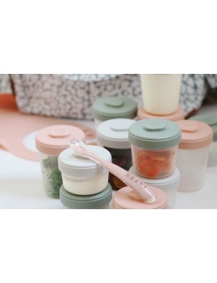 Set de 12 portions clips et 2 cuillères silicone : pack premier repas composé de 6 portions clip de 250 ml, 4 portions de 150ml, de 2 portions de 90ml et de 2 cuillères en silicones, tout le nécessaire pour démarrer la diversification alimentaire de vos tout-petits
