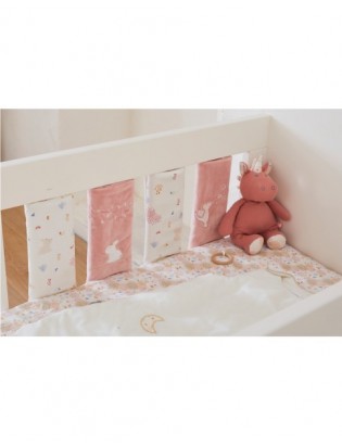 Les protèges barreaux en Veloudoux rose et imprimés nature rebrodés des personnages de la collection Lina & Joy, sont parfaits pour s'adapter aux barreaux ronds ou plats de tous les lits bébés ainsi que des parcs. Placez-les sur les premiers barreaux près de la tête de bébé afin de le protéger. Fermeture par pattes autogrippantes pour s'adapter à tous les lits bébés.